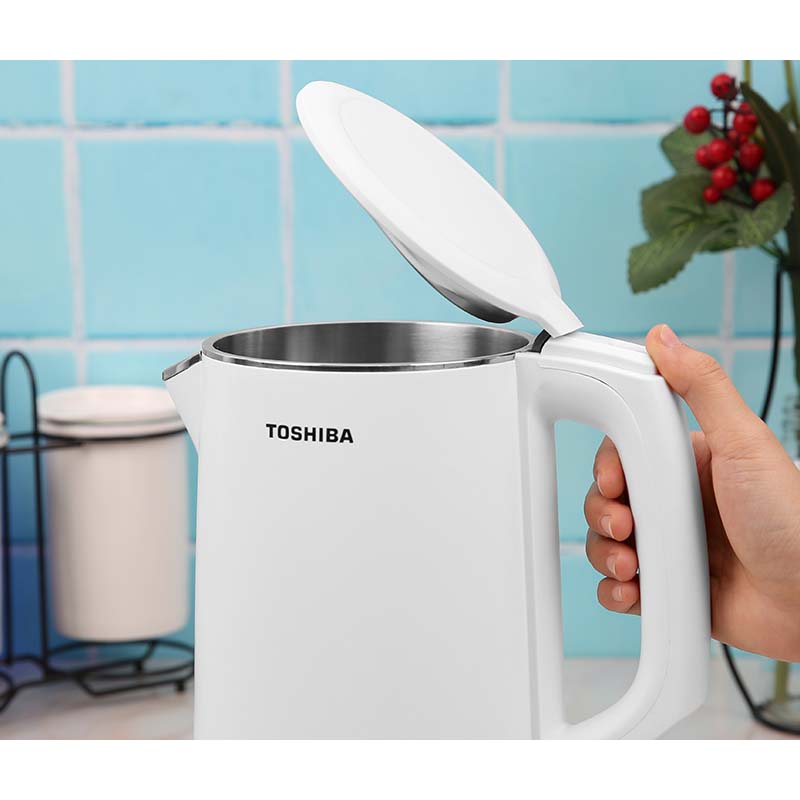 Bình đun siêu tốc Toshiba thiết kế đơn giản, màu trắng tươi sáng cho không gian bếp thêm hiện đại, tinh tế