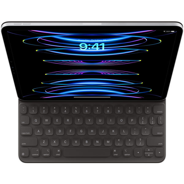 Smart Keyboard Folio cho iPad Pro và iPad Air là bàn phím thoải mái khi bạn cần, giữ mặt trước và mặt sau luôn trang nhã khi không sử dụng. Với hai góc nhìn thuận tiện và không cần sạc hay ghép nối, chỉ cần gắn bàn phím và bắt đầu gõ.